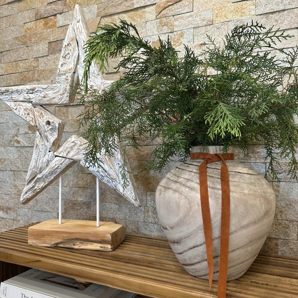 Ez a természetes uszadékfa ágakból összeállított, rusztikus csillag alakú dísz egyedi és meghitt karácsonyi hangulatot teremt.