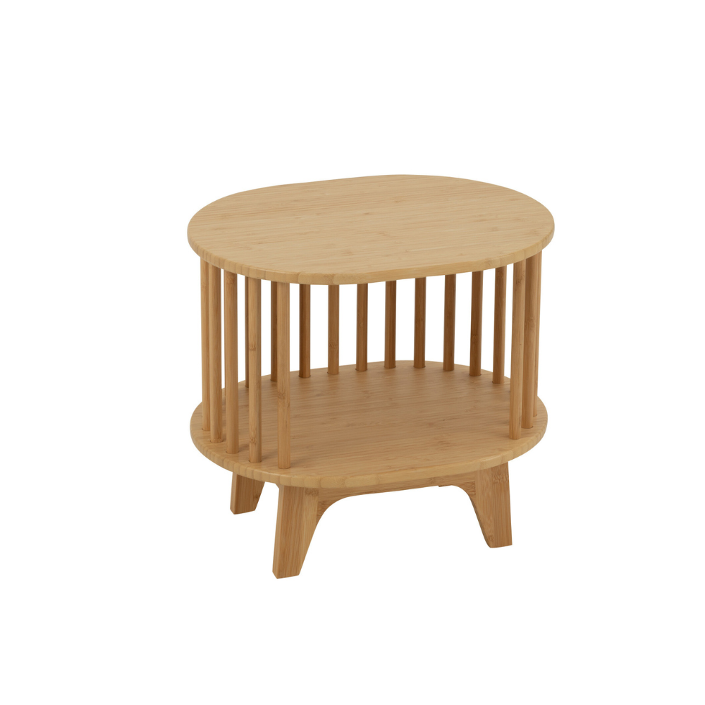 Ez a bambusz és rattan felhasználásával készült éjjeliszekrény természetes anyaghasználatával és kompakt, letisztult formavilágával nyugodt, harmonikus kiegészítője a hálószobának. A finoman pálcázott oldalszerkezet légies megjelenést ad a bútornak, miközben vizuálisan könnyű marad, a meleg tónusú bambusz felület pedig otthonos, természetközeli hangulatot teremt.