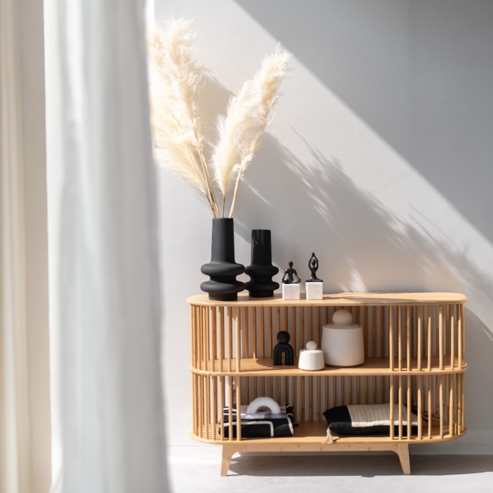 Harmonikus választás mediterrán, bohém, japandi vagy természetes enteriőrökbe, ahol a letisztult forma és az őszinte anyagok egyensúlya meghatározó szerepet kap. Ez a komód nem csupán tárolóbútor, hanem a tér hangulatát finoman formáló, időtlen darab.