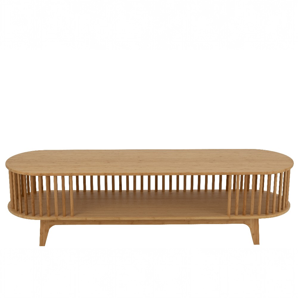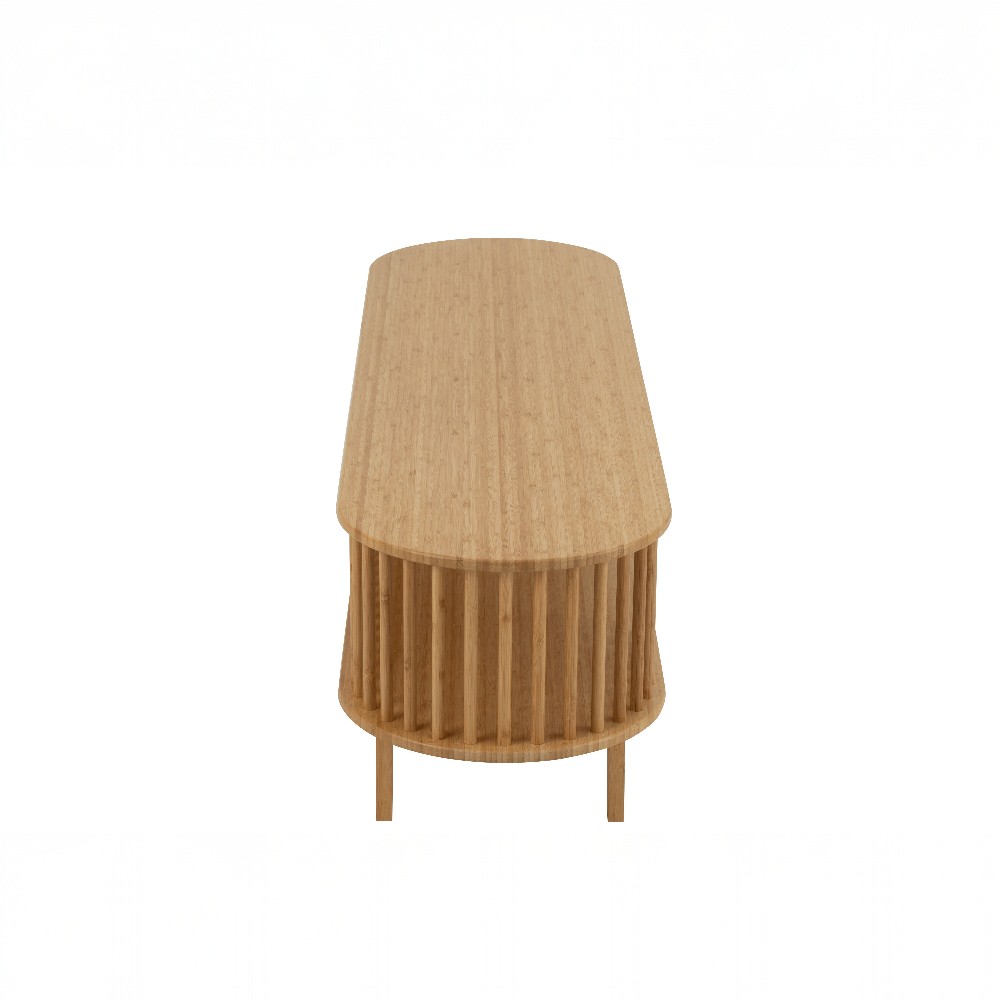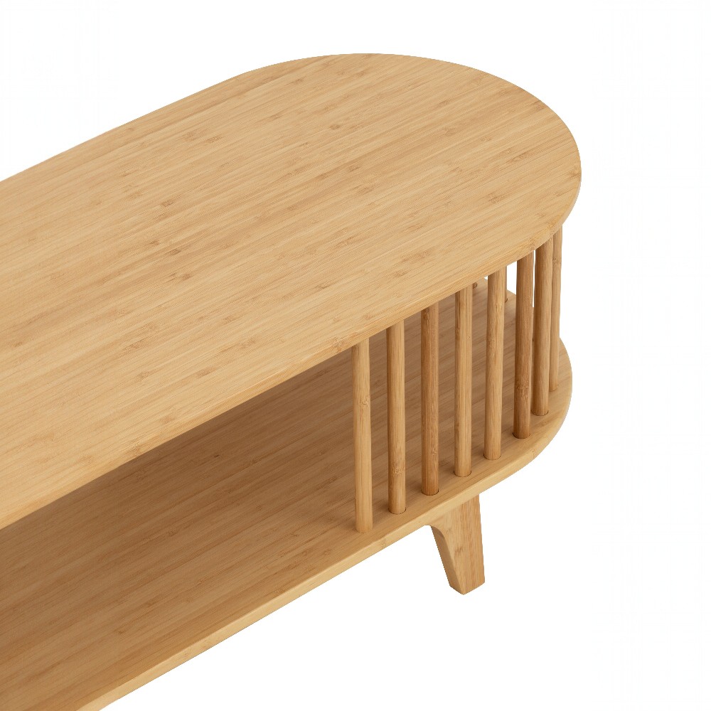 Ez a bambusz, rattan és nád felhasználásával készült TV-állvány természetes anyaghasználatával és letisztult, légies formavilágával harmonikus alapot ad a nappali központi terének. A finoman tagolt, pálcás szerkezet könnyedséget kölcsönöz a bútornak, miközben stabil és időtálló megjelenést biztosít, a meleg tónusú felületek pedig nyugodt, természetközeli hangulatot teremtenek.