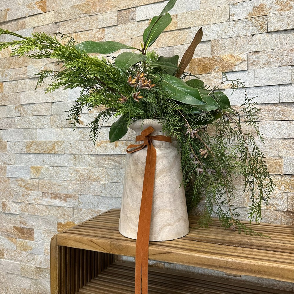 A Bosco Amfóra Váza a természetes anyagok időtlen szépségét ötvözi a kézműves egyszerűséggel. Formája a klasszikus amforákat idézi, mégis modern és letisztult megjelenésű. Kézzel faragott natúr fából készült, minden darab egyedi erezetű és textúrájú.