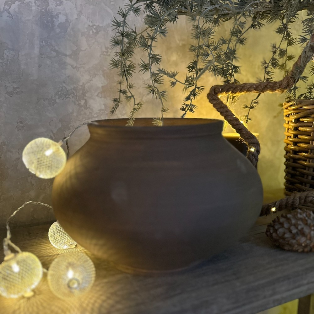 A váza masszív és tartós anyagból készült, amely időtálló, miközben megőrzi a kézzel készített kerámiák egyedi, rusztikus varázsát. Ideális önmagában dekorációként vagy szárított virágok, termések és más természetes díszítőelemek bemutatására.