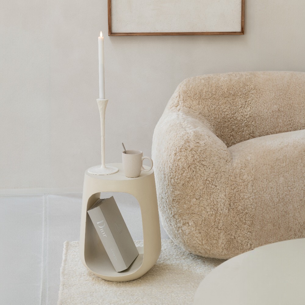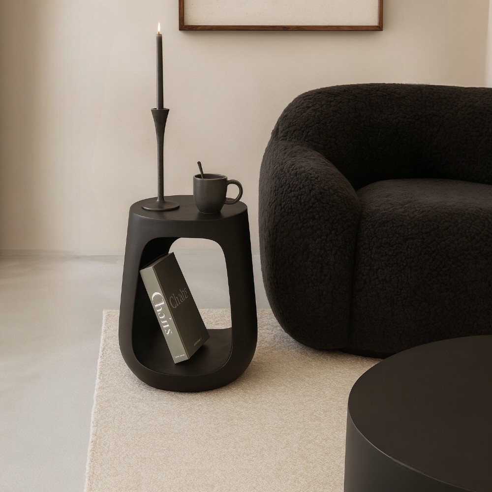 Ez az oldalasztal kortárs, szoborszerű formavilágával finoman emeli az enteriőr karakterét. Lágy ívei és monolitikus megjelenése egyszerre hat erőteljesen és visszafogottan, miközben a nyitott kialakítás könnyedséget és funkcionalitást ad a darabnak.