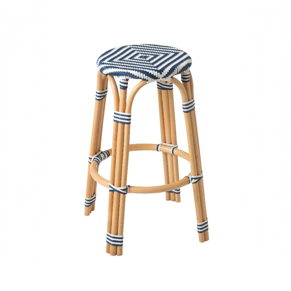 A természetes anyagok és a játékos részletek találkozásából született ez a bárszék, amely könnyed, mégis karakteres jelenlétével azonnal életet visz a térbe. A hajlított fa váz finom ívei és a kézzel font ülőfelület dinamikus mintázata egyszerre idézik meg a mediterrán életérzést és a modern, laza eleganciát. A világos fa és a kék-fehér fonás friss, üde összhatást teremt, amely különösen jól érvényesül konyhában, bárpultnál vagy akár egy nyári hangulatú enteriőrben.